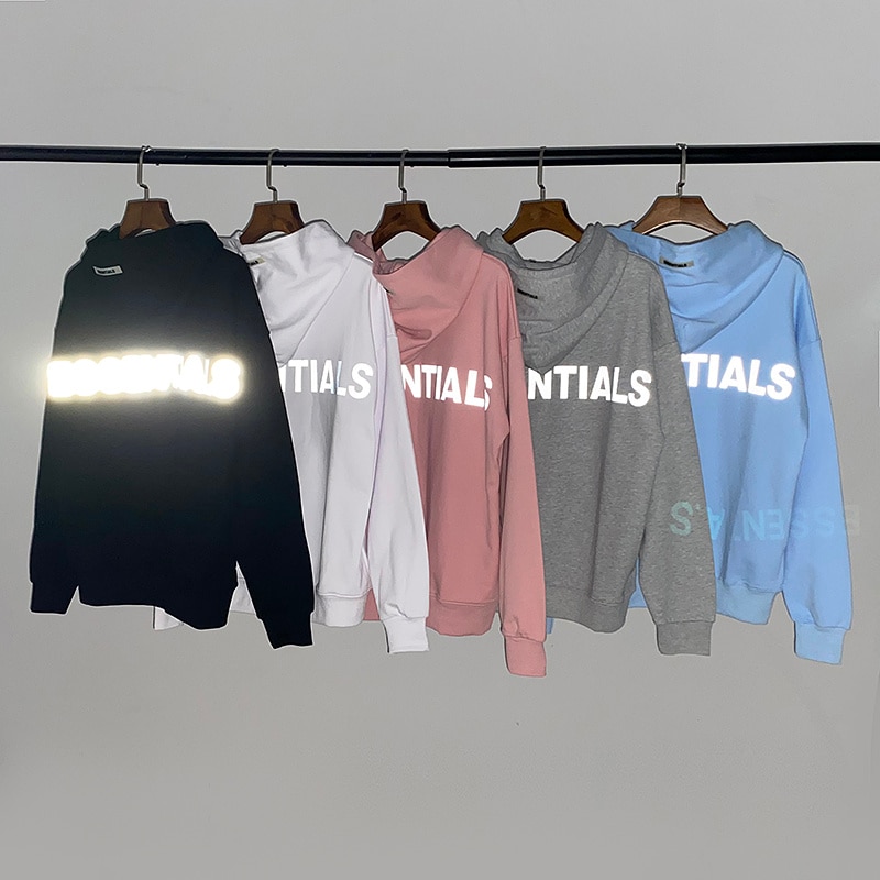 Long-sleeved hoodie with reflective Essentials print on the back, 100%